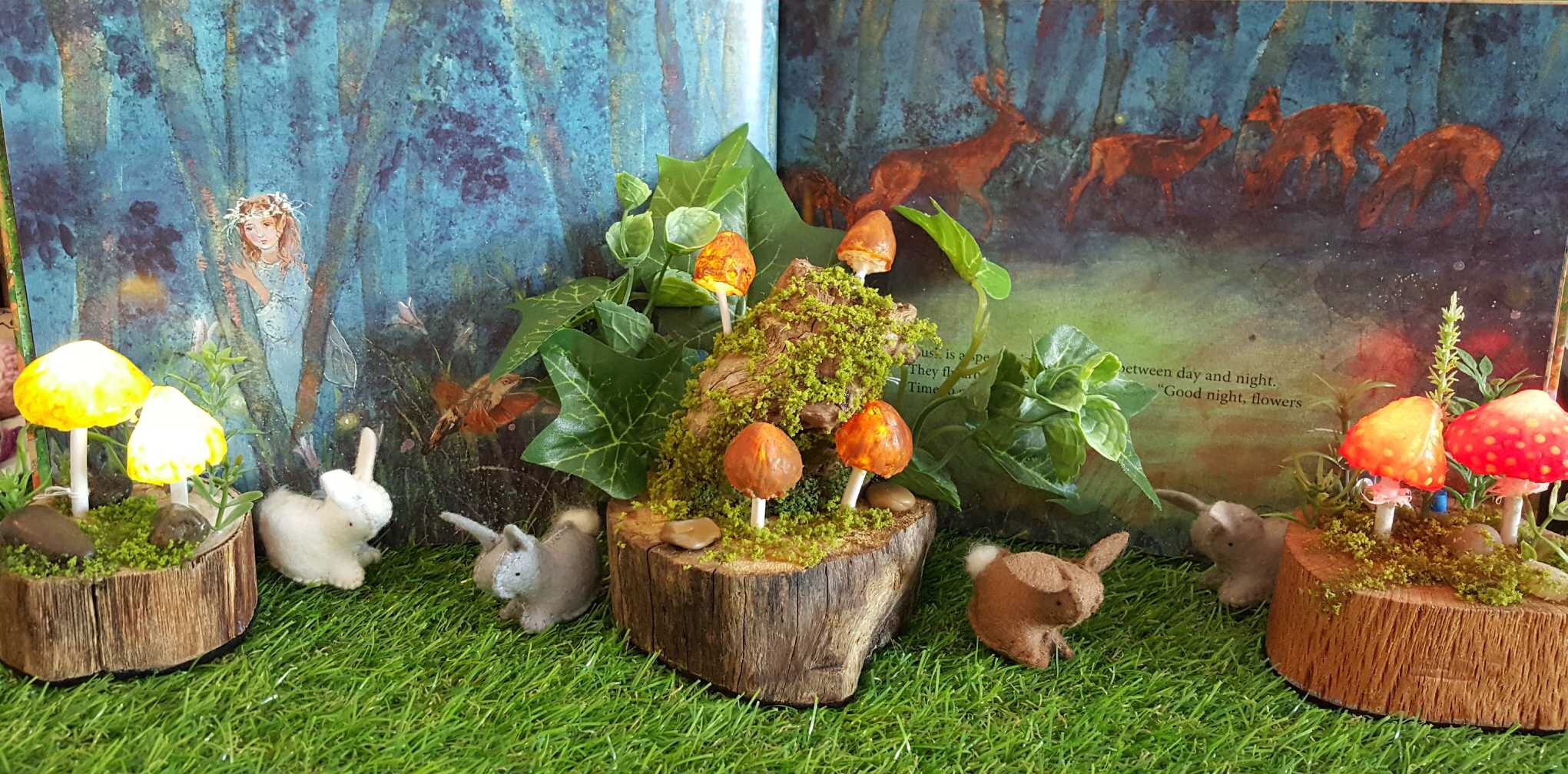 Images of finished products are examples. We use pure wool felt, often hand dyed, and upcycled fabrics, so no two will ever be the same.